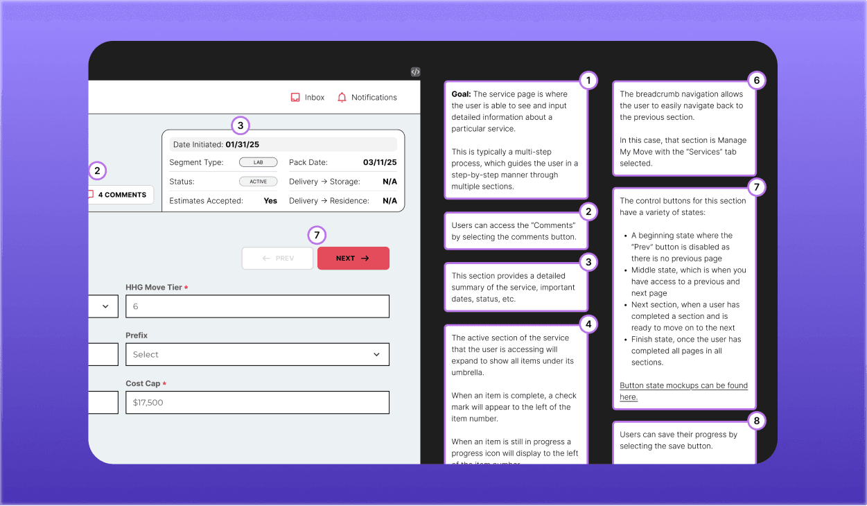 I would not have access to the engineering team, so I left detailed annotations for each screen. This was a quick turnaround, so sometimes annotations had to replace designs of various states or flows.