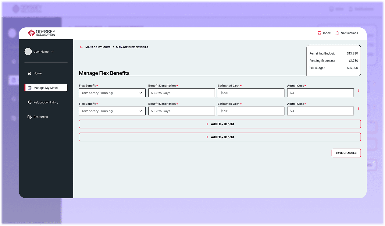 Creating a new "Manage My Move" item in the main nav brought the flex benefits action to the forefront of the experience.